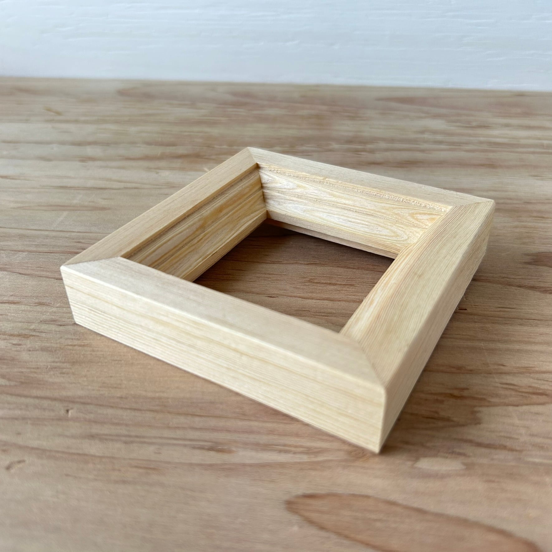 天然木から切り出したからこそのぬくもりと、世界に一つだけの木目をもったフレームです。