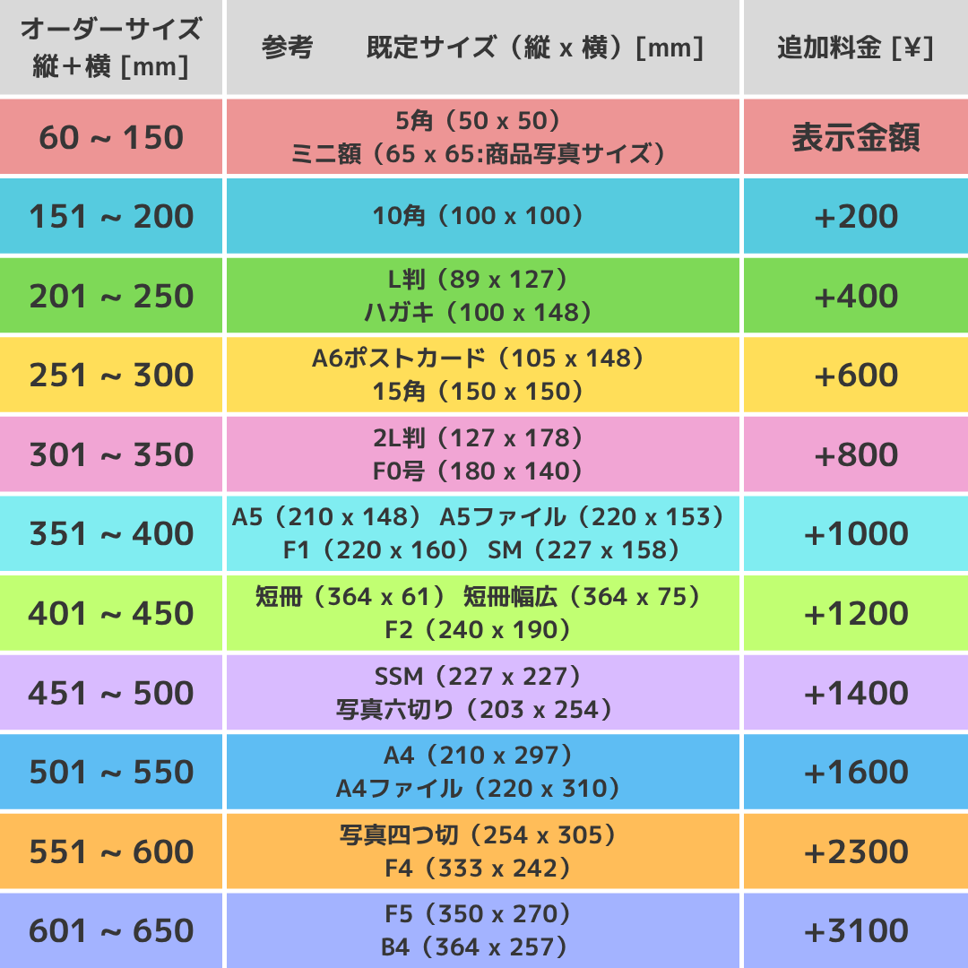 製作寸法 :入れる作品の大きさ