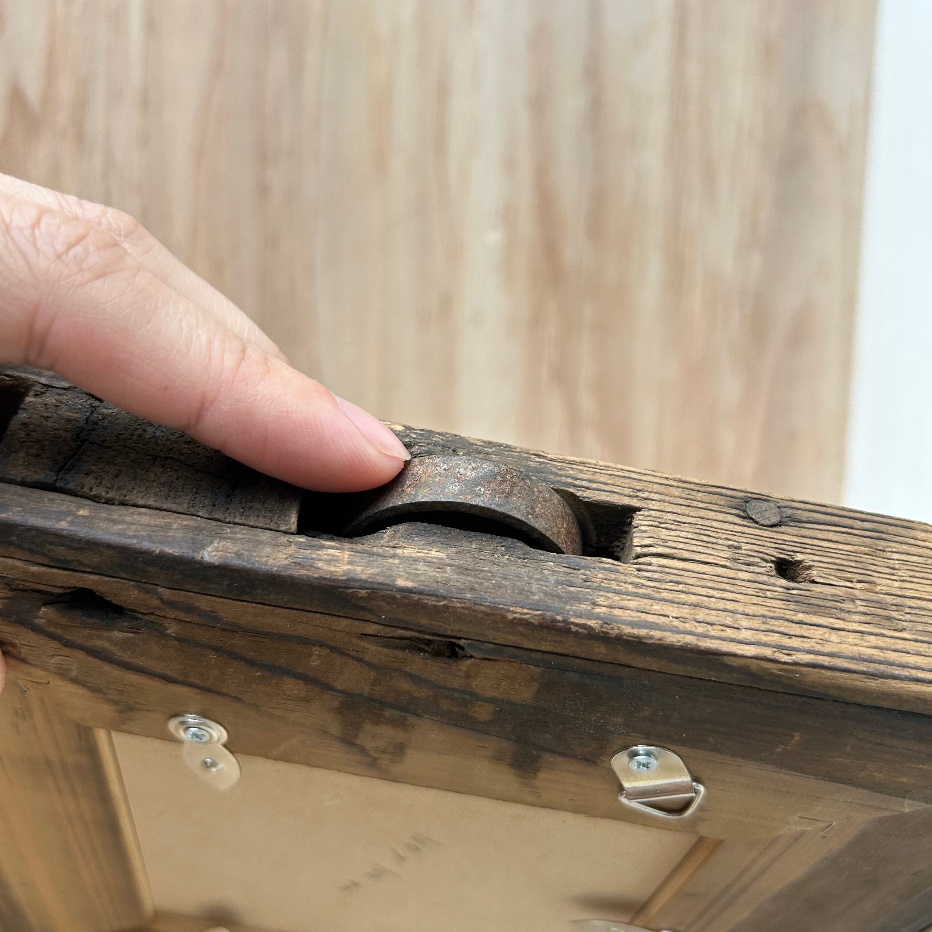 昔使われていた戸の下桟部分を戸車を外さずに額縁にしました。