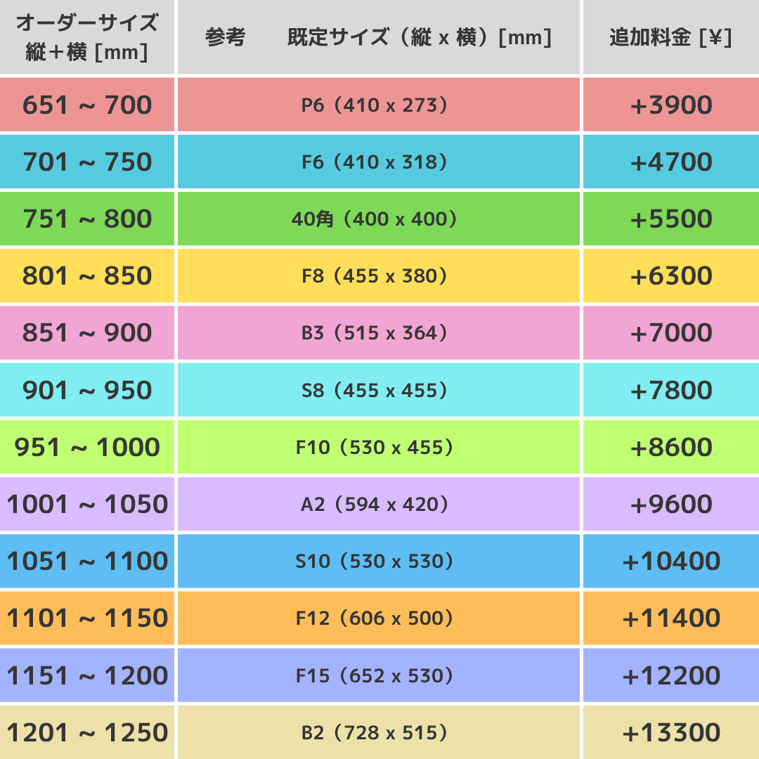 決まったサイズの場合、「既定サイズ」よりサイズをご選択ください。