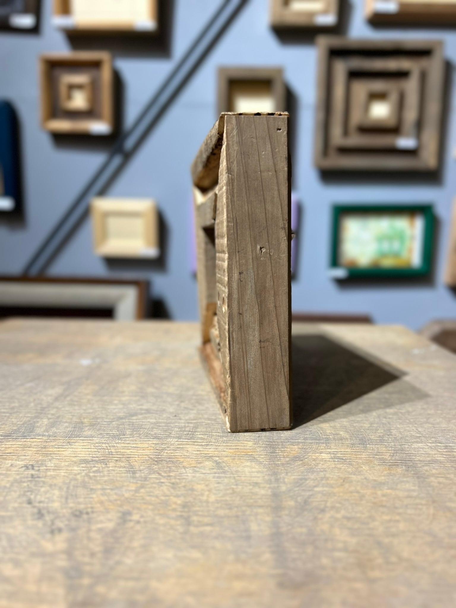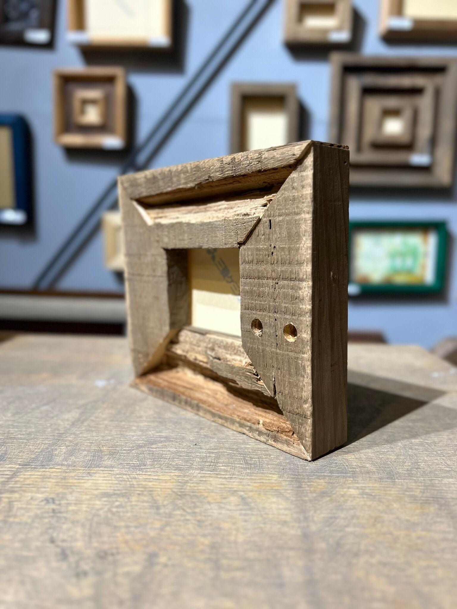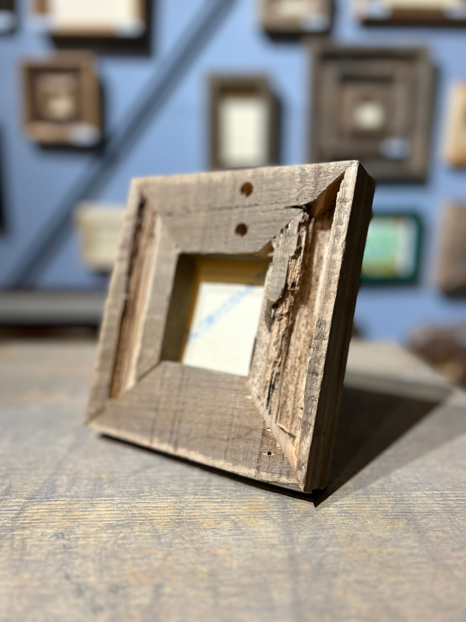 虫食いのされた古材を丁寧に清掃をし、使用できる部分をフレームにしました。