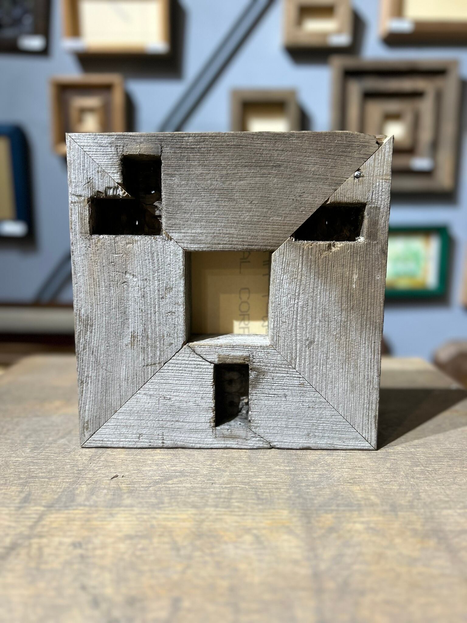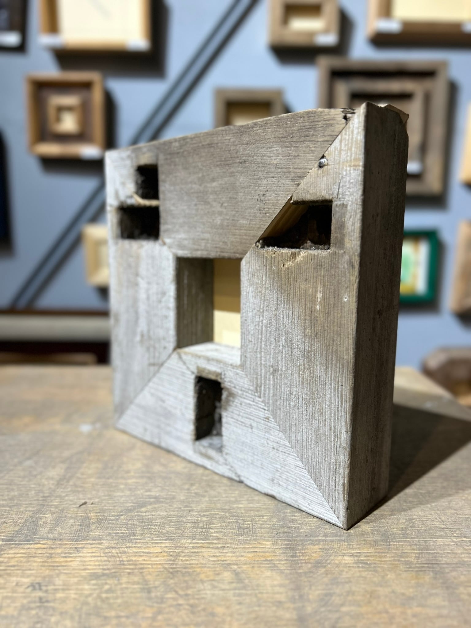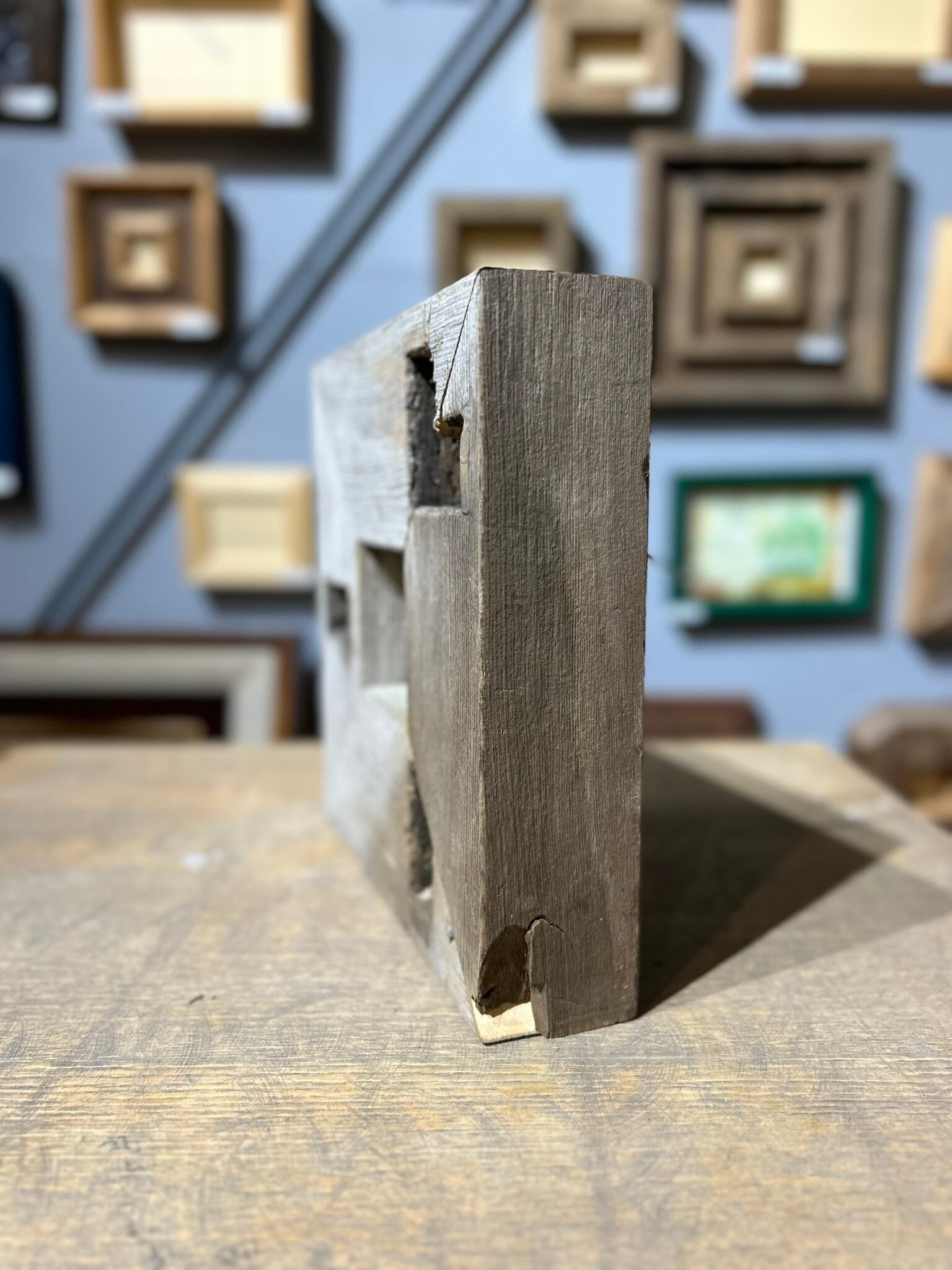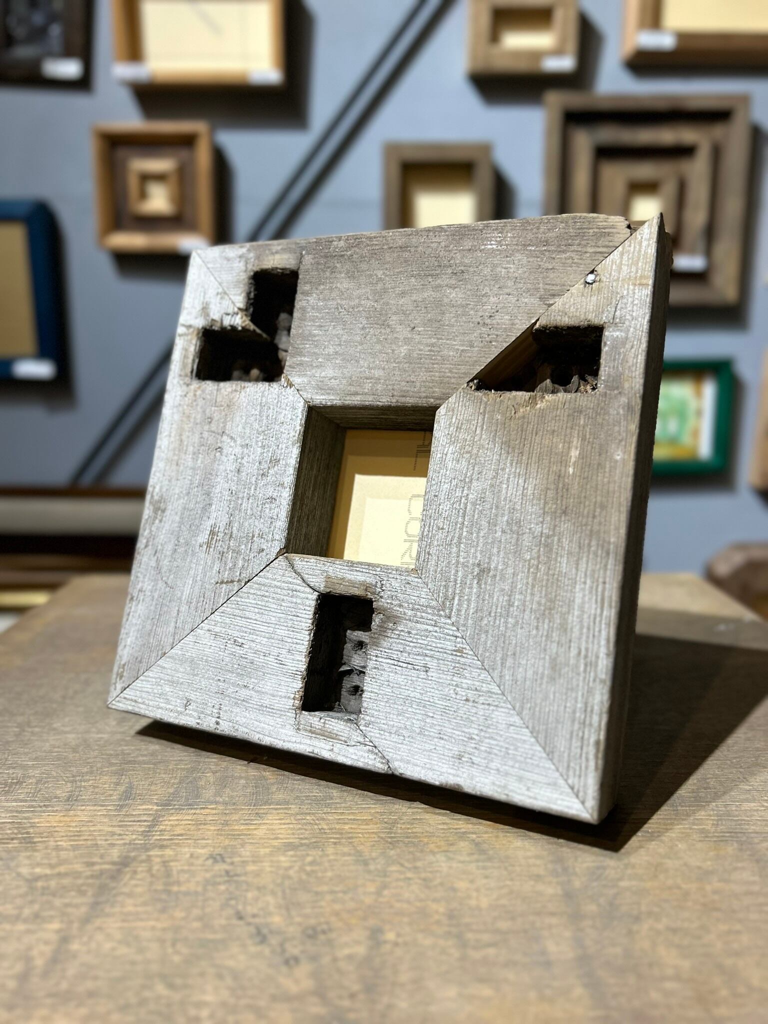建物の柵に使われていた材をフレームにしました。