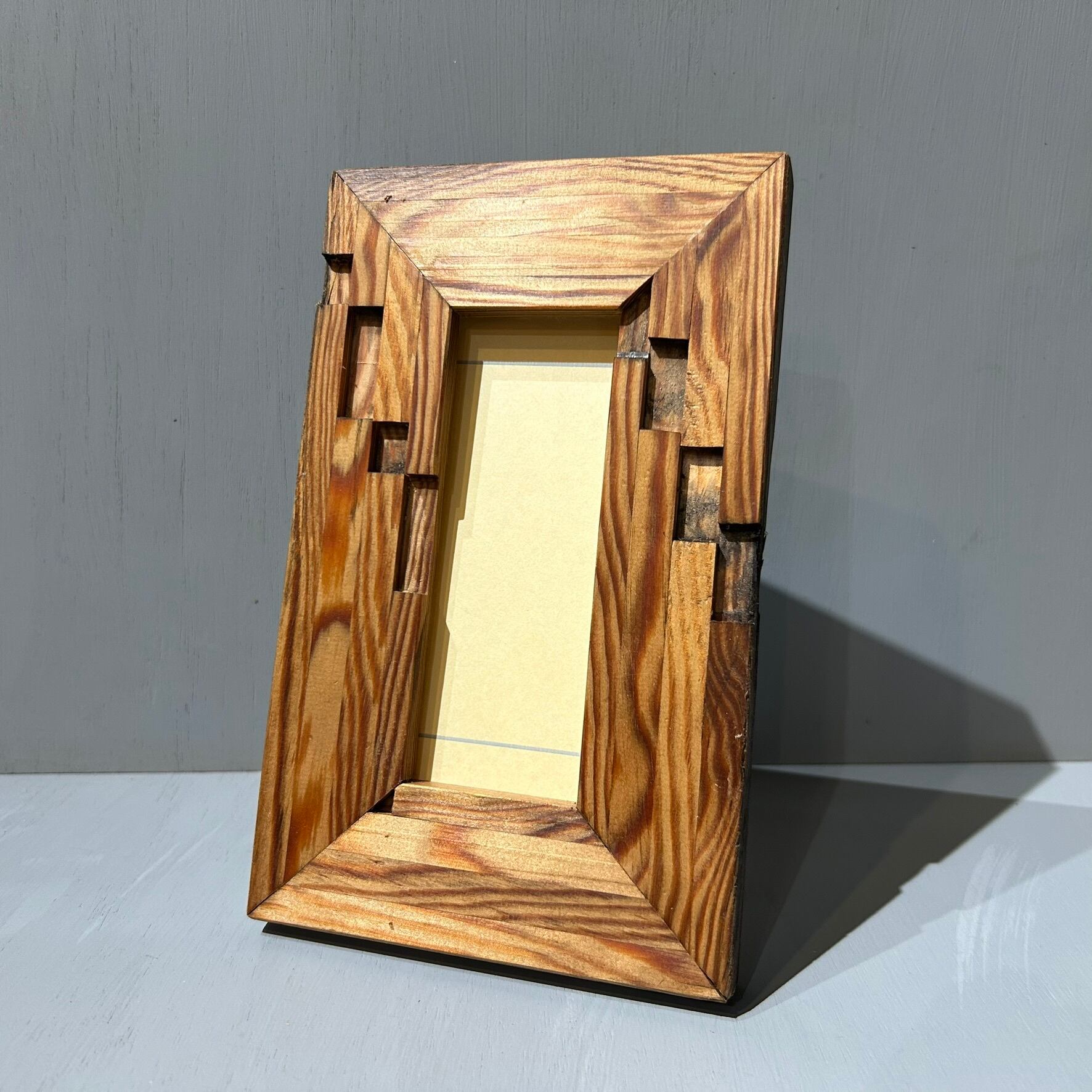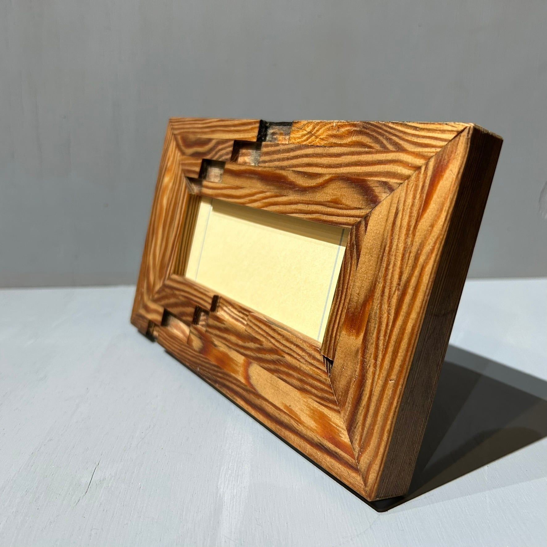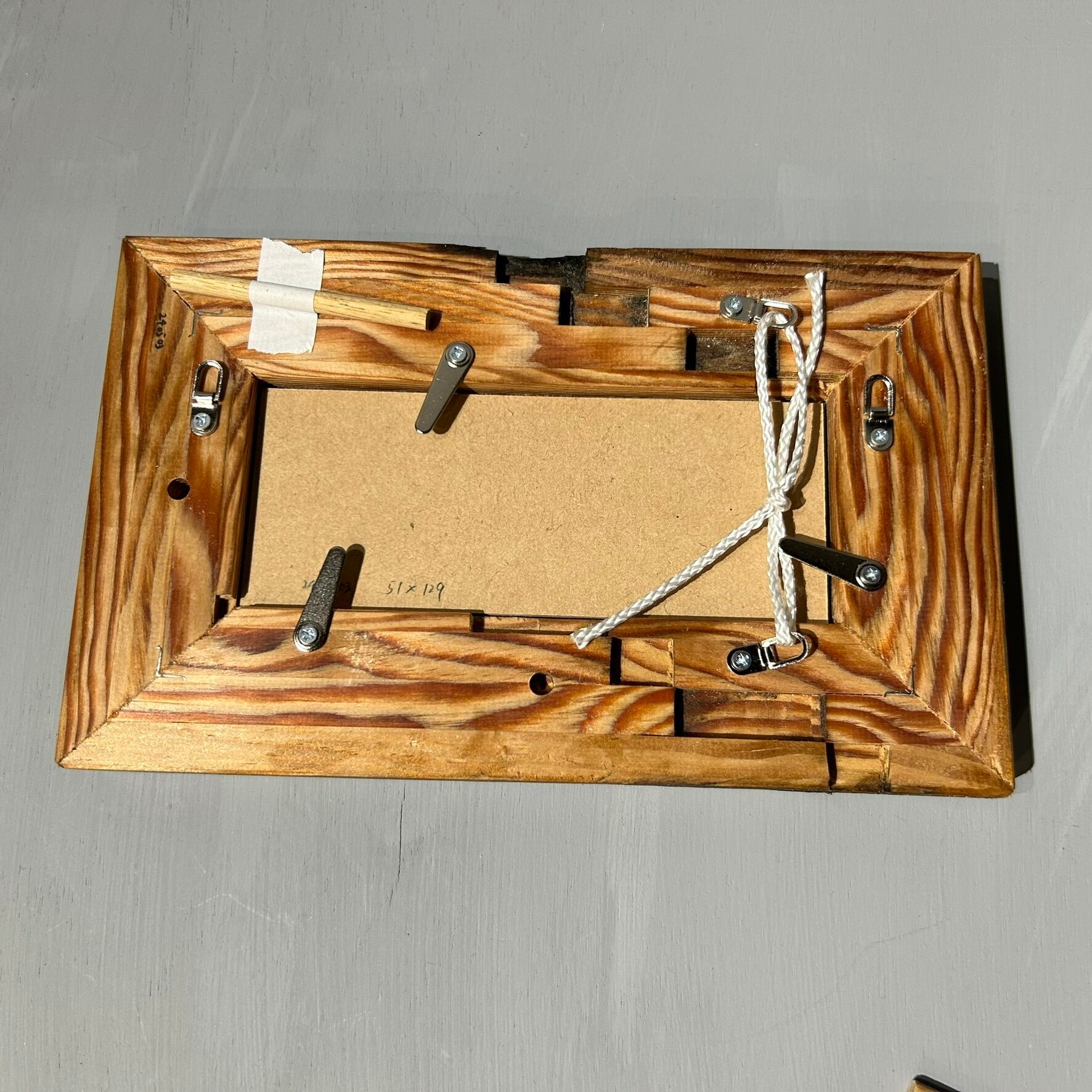 家具に使われていた材を細切りにし、装飾になるようにして張り合わせたものを額縁にしました。