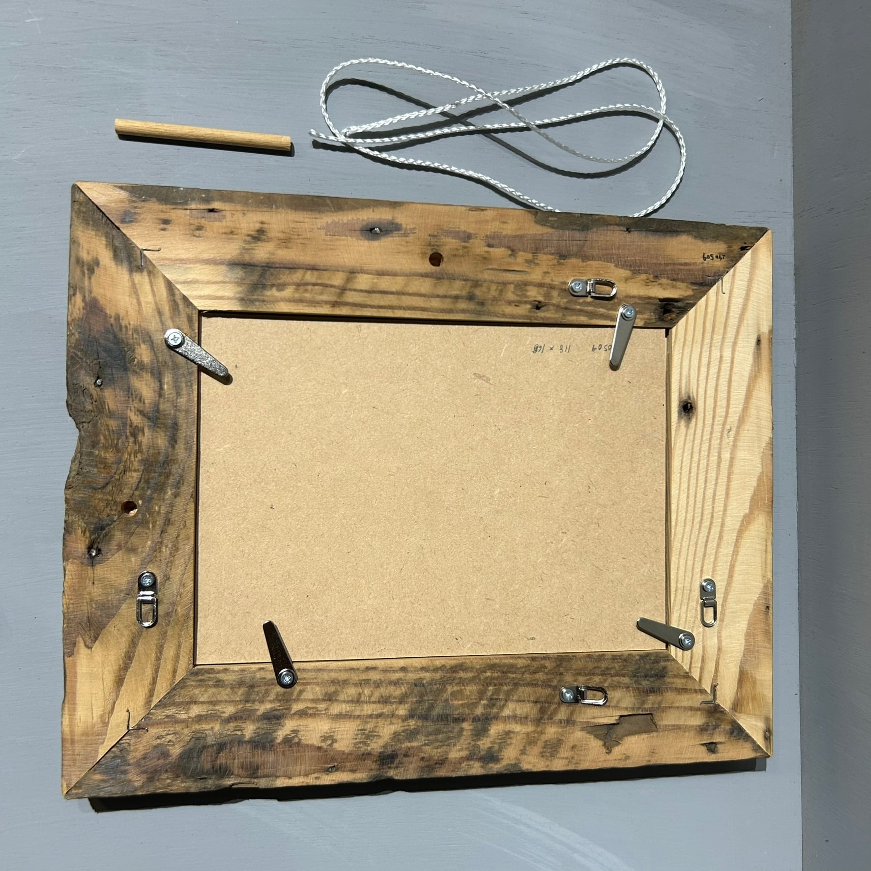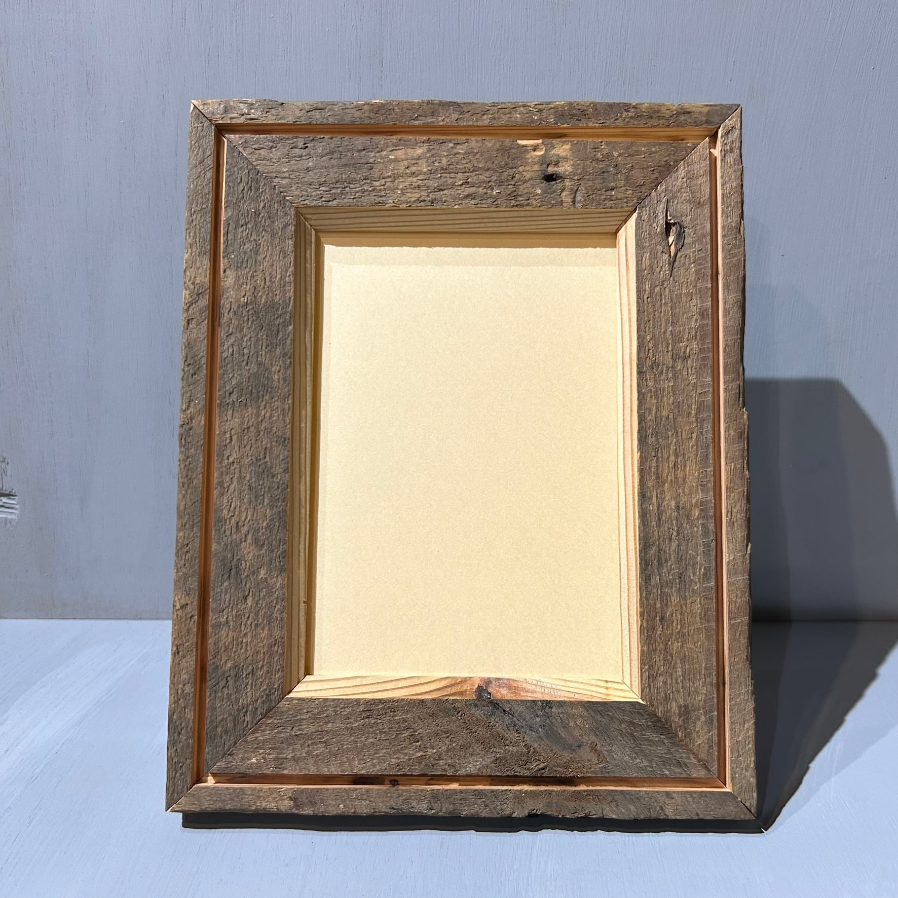 表面の美しい古材に溝と内側装飾を施した額縁です。