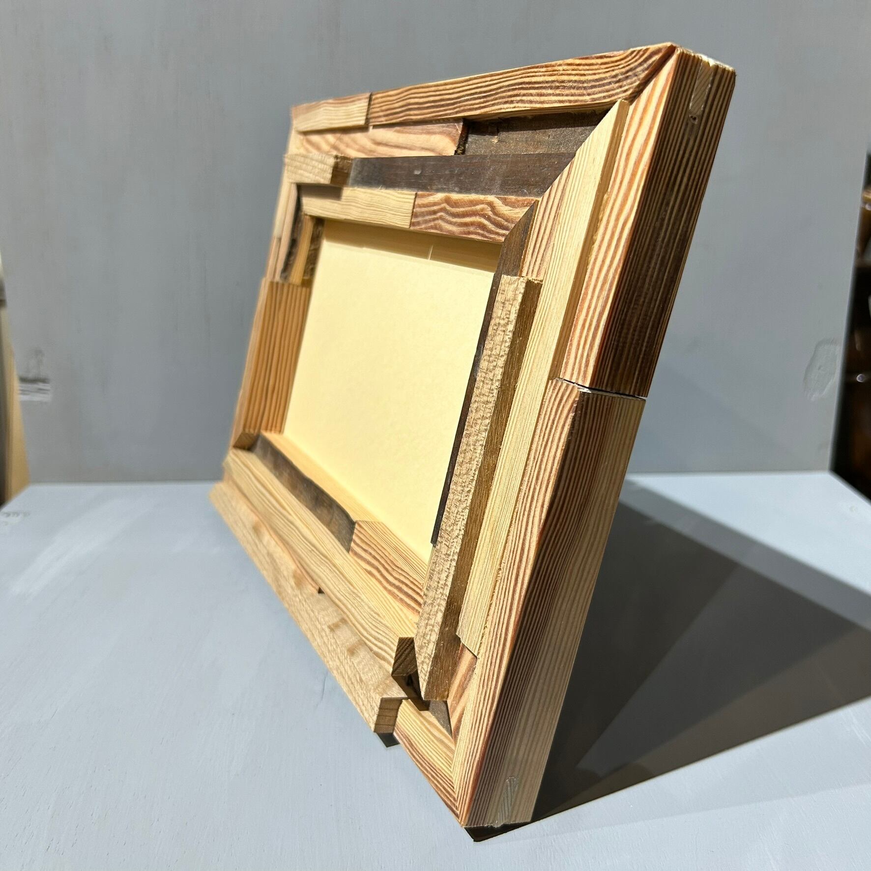 様々な高さの異なる木片を組み合わせて額縁にしました。