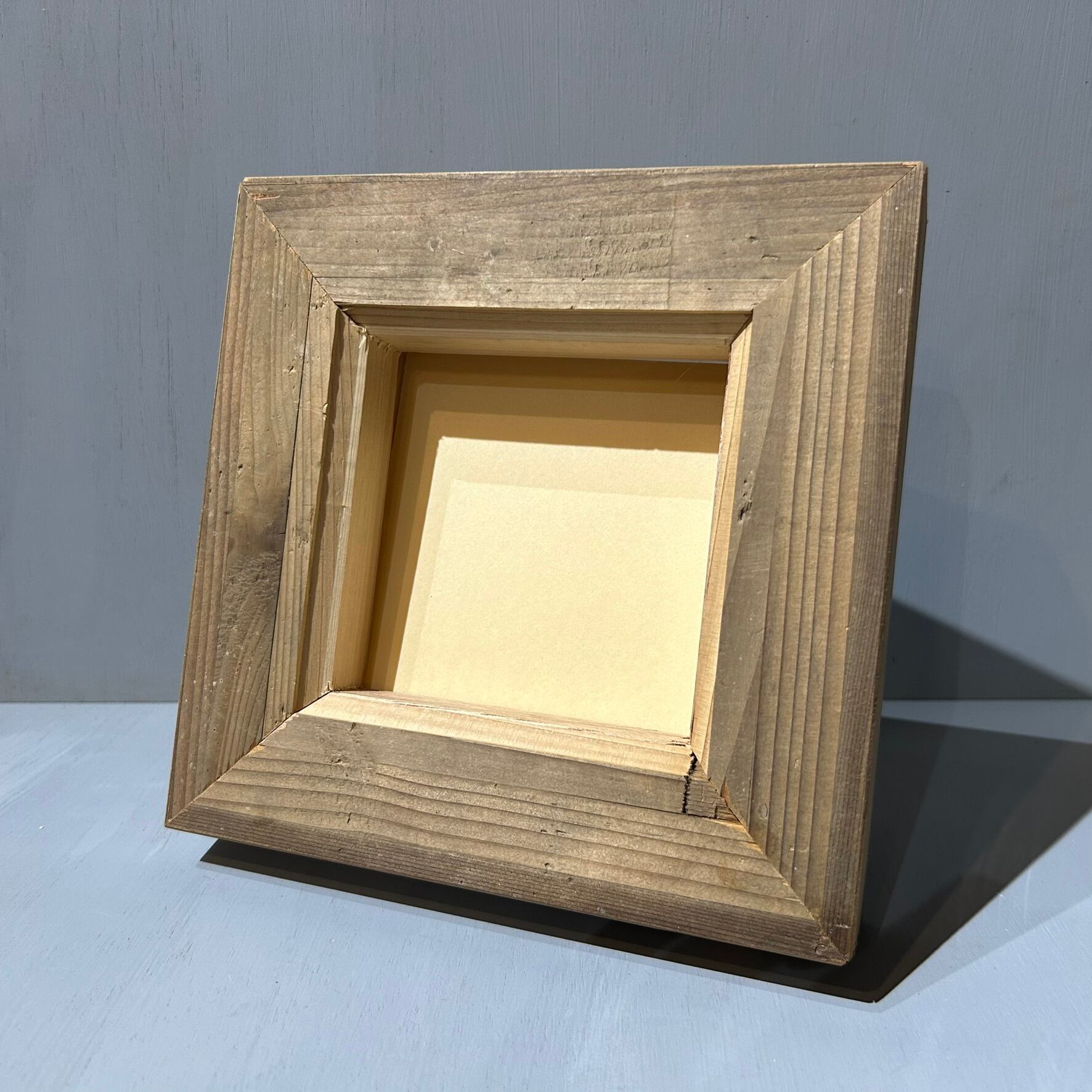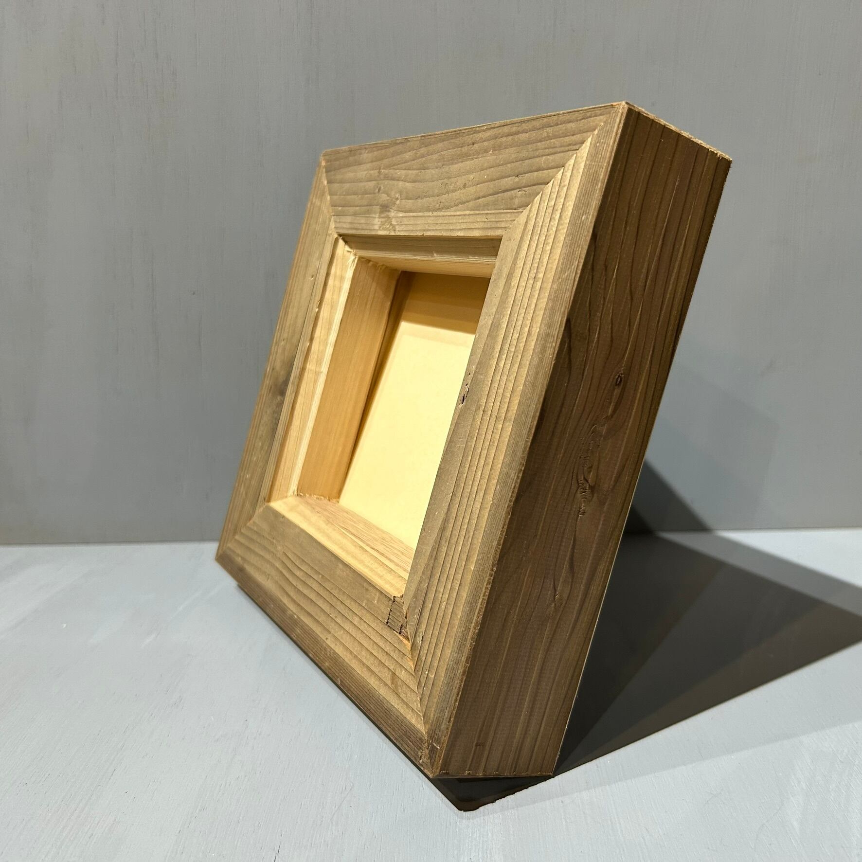 古い集成材を丁寧に清掃し、内側の装飾を加えて額縁にしました。
