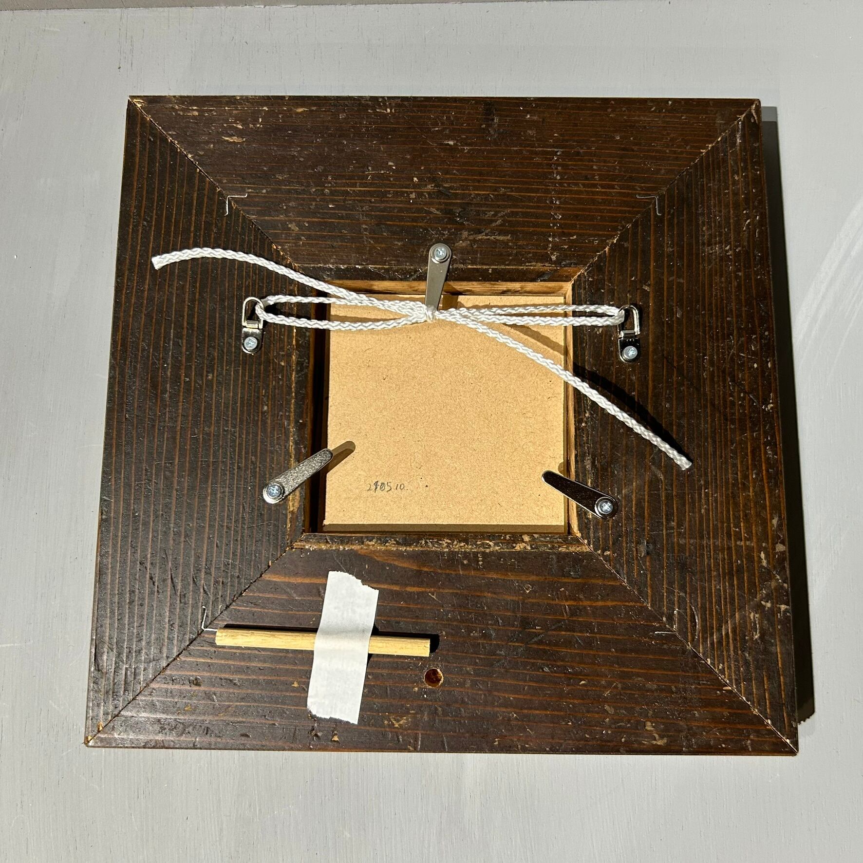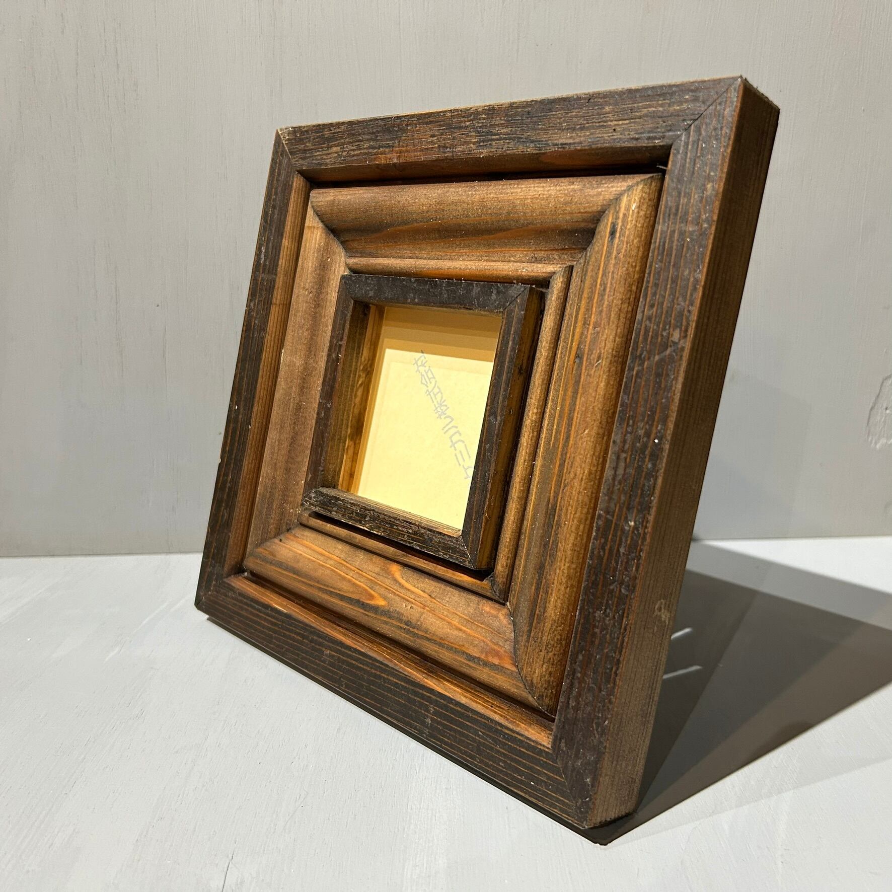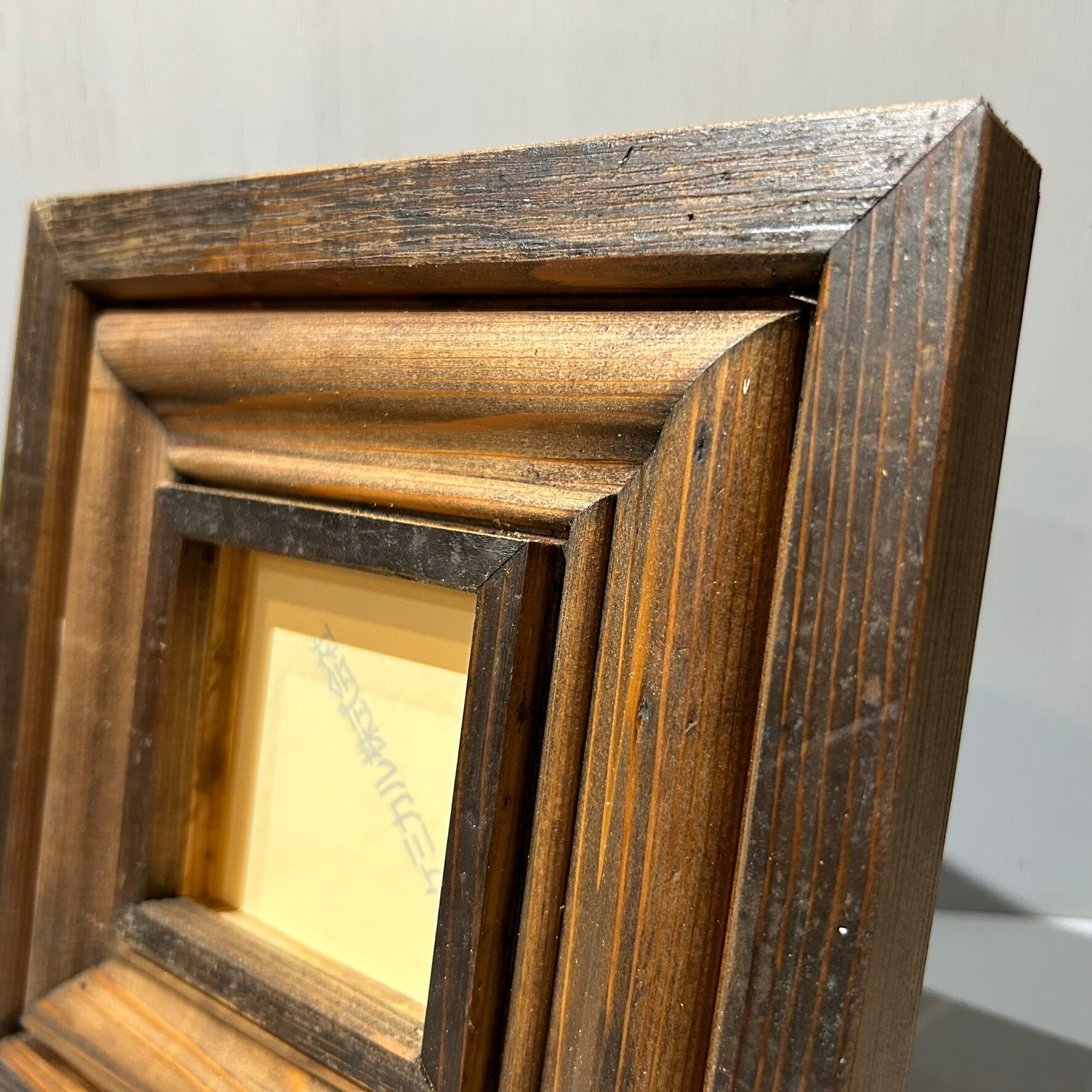 古い家具の棚板だった杉の古材を棚板の時の塗装を残しつつ、額縁にしました。