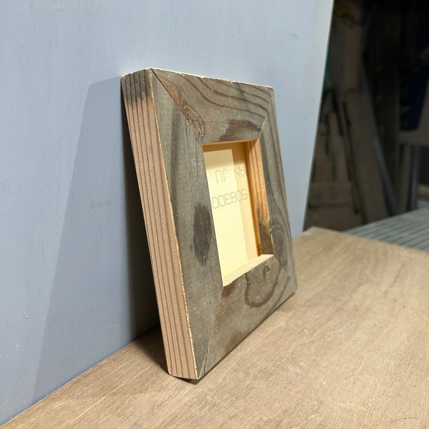 塗料が少しついた古材のフレーム。