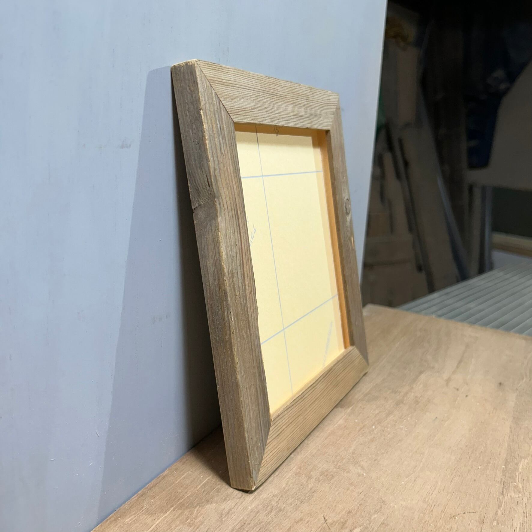2本の材を対辺に使ったシンプル古材フレーム。